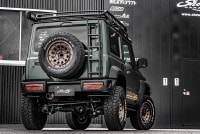 弊社製FRPリアウィング(品番:E00710)および右上移動タイプのスペアタイヤ移動ブラケット(品番:E00018・E00019・E00021)との併用はできません。
