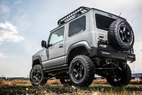 この度ショウワガレージが開発した「スペアタイヤ移動ブラケット JB64 表向き 右上移動タイプ」は、ブラケットをベース部とタイヤ装着部に分割することにより、そのような問題を解決、車検対応としました。