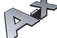 軽量アルミ製ルーフラック「A-xシリーズ」のロゴを立体エンブレムにしました。