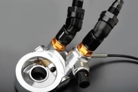 センサー取付け部分の内径を広げる事でオイル配管内に温度センサーが突き出した状態でも断面積を確保できるよう設計されています。